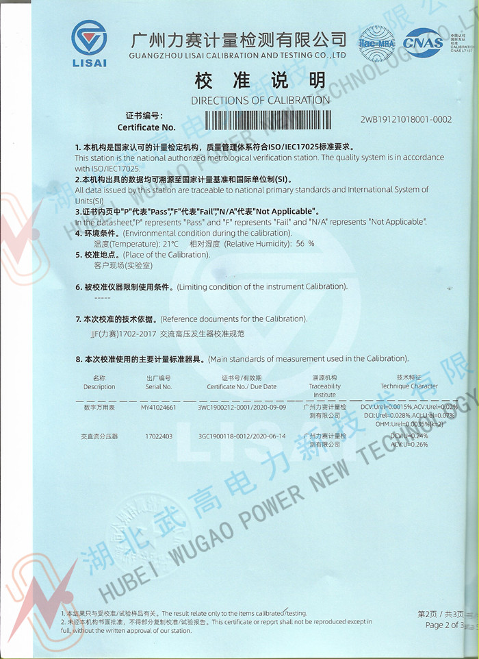 AC:50KV、100KV、150KV、200KV: DC:70KV、140KV、210KV